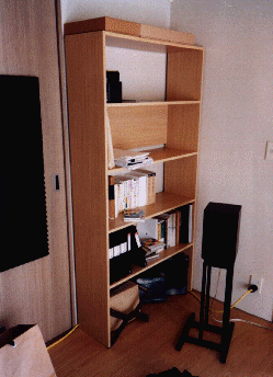 それで、これが完成品です。 市販品よりしっかりしてますし、書籍や資料の 量に応じて改造が簡単です。でも写真では本がほとんど入ってませんね(笑)。